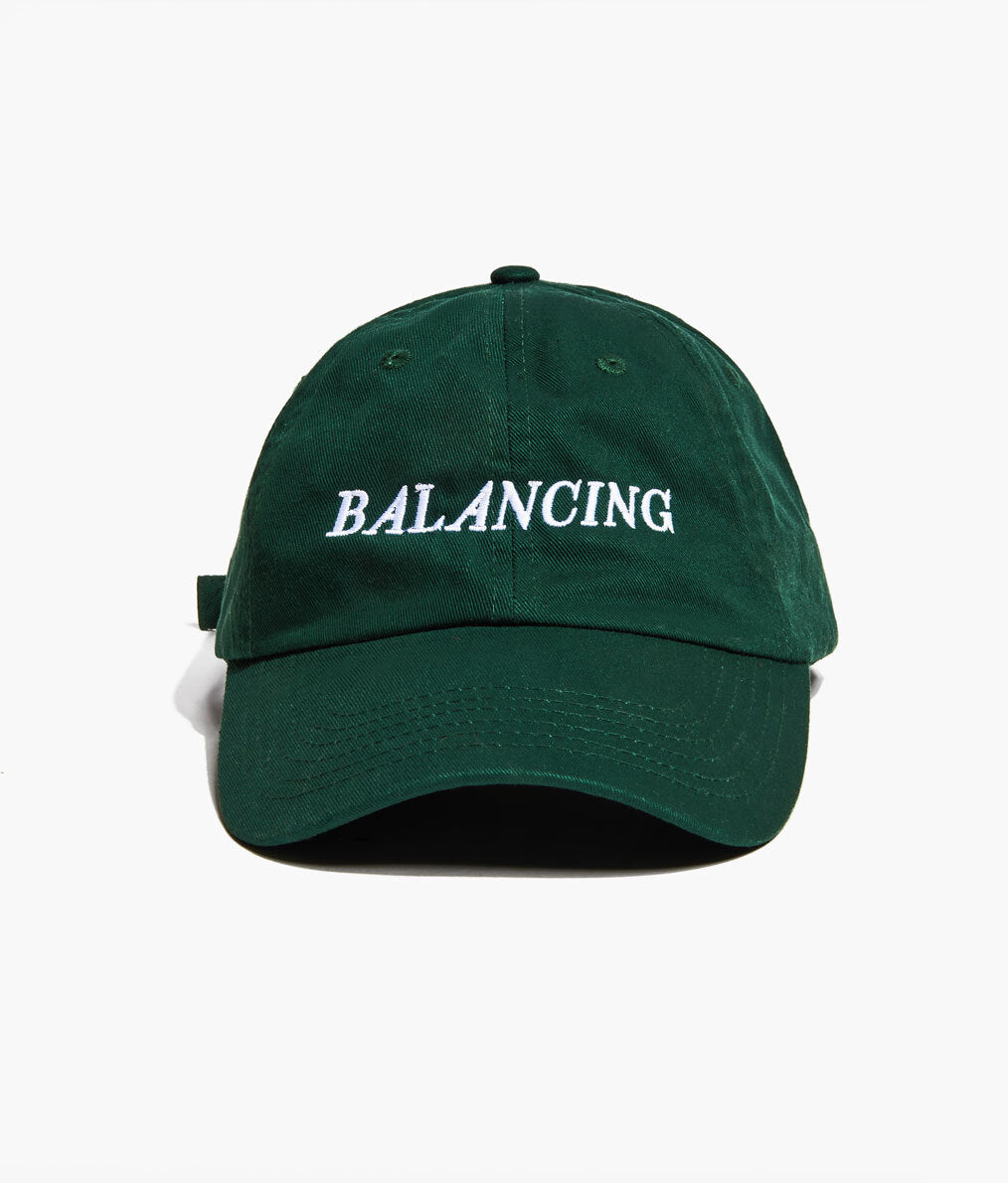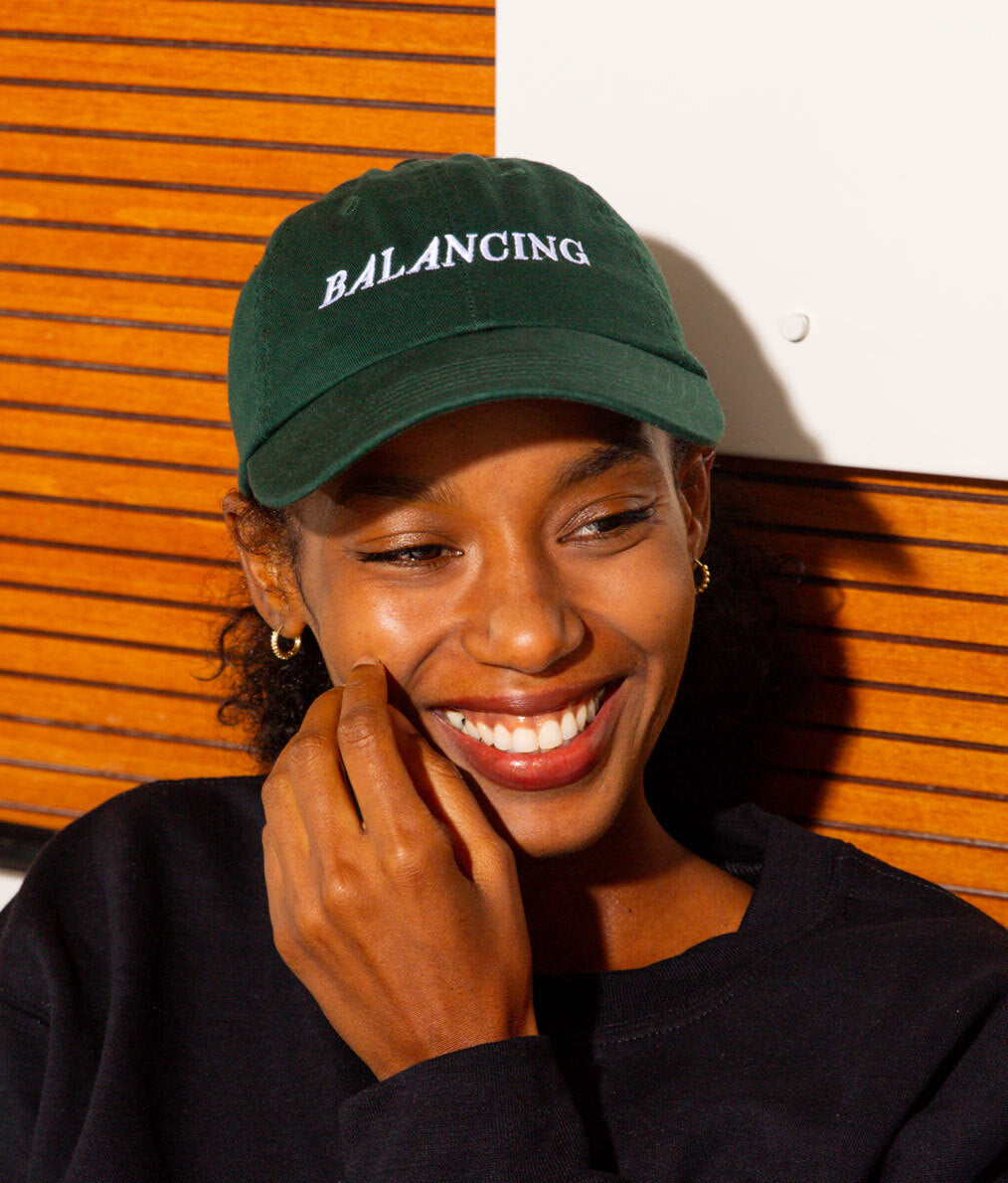 “Balancing” embroidered bio-washed green baseball hat. Created exclusively for Hormone Health Awareness Month, 10% of all sales will go to charity partner, I Support The Girls Flash Kits, for the month of September.