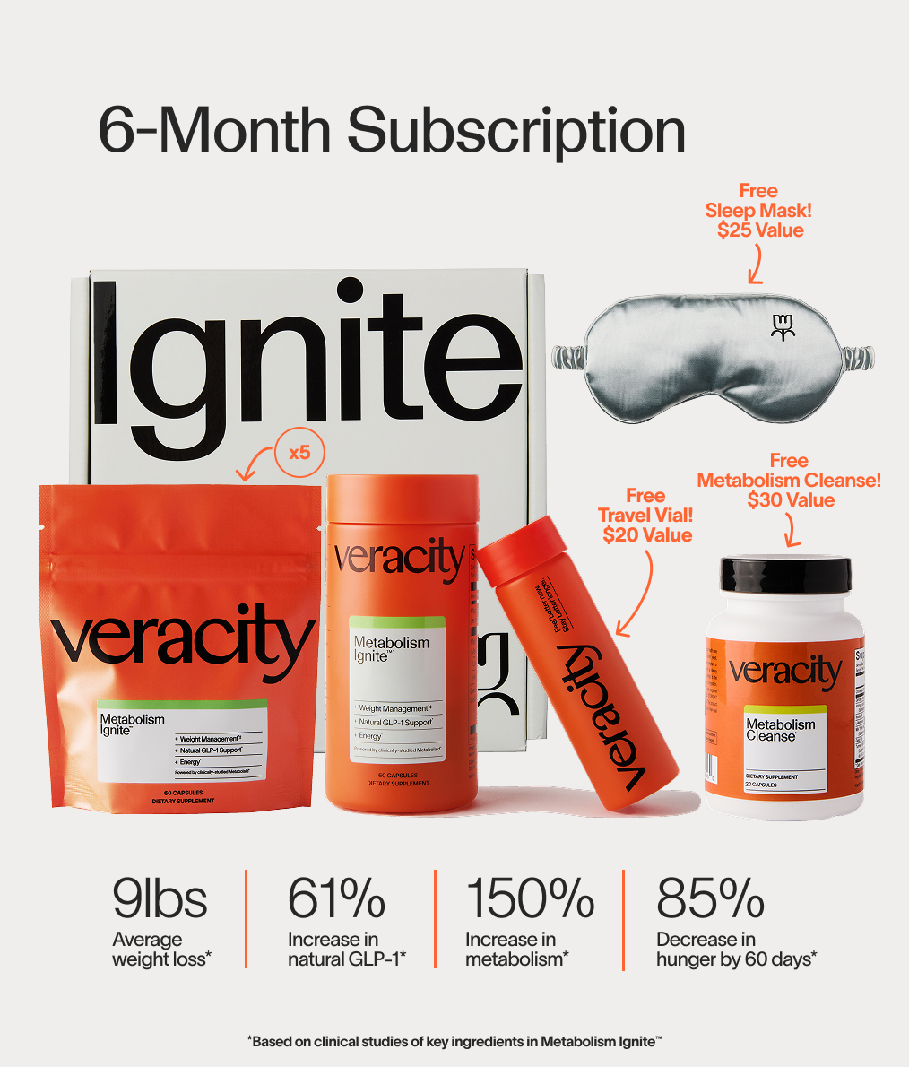 *Based on 8 independent double blind placebo clinical trials and 2-preclinical studies on key ingredients in Metabolism Ignite