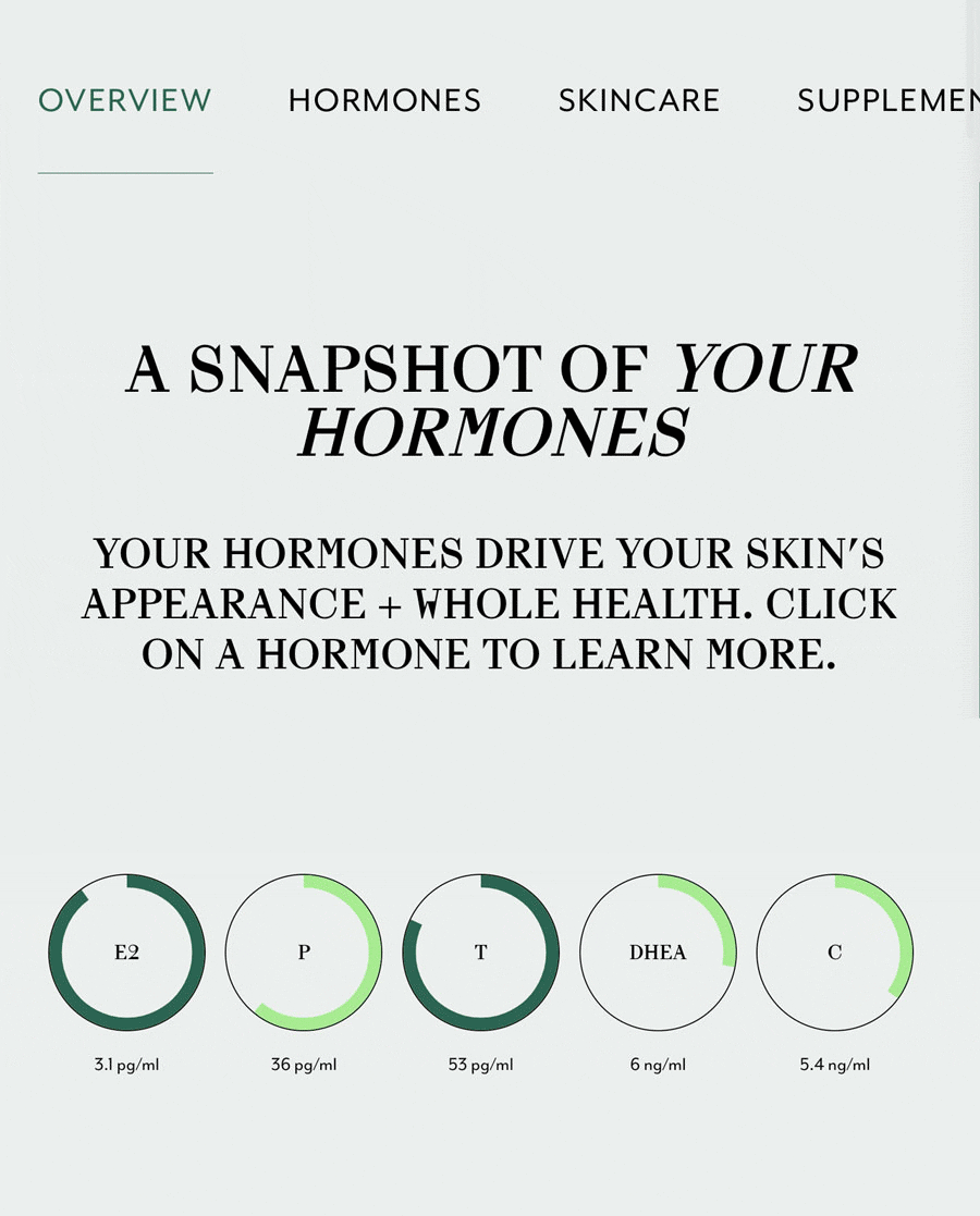 You’ll get science-backed health insights about how your hormone levels are impacting your health, along with personalized recommendations to treat concerns and target any found imbalances.