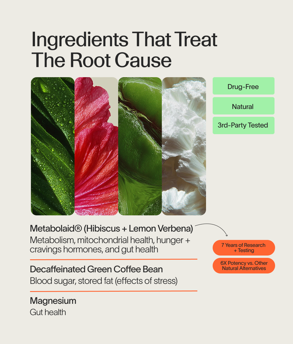 - Metabolaid® – a blend of Lemon Verbena and Hibiscus Extracts that supports weight management, appetite control, and healthy blood pressure backed by 7 clinical trials.